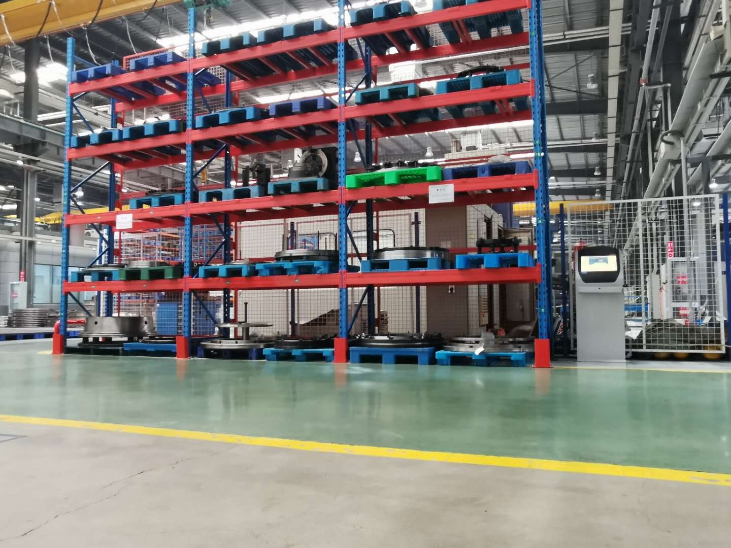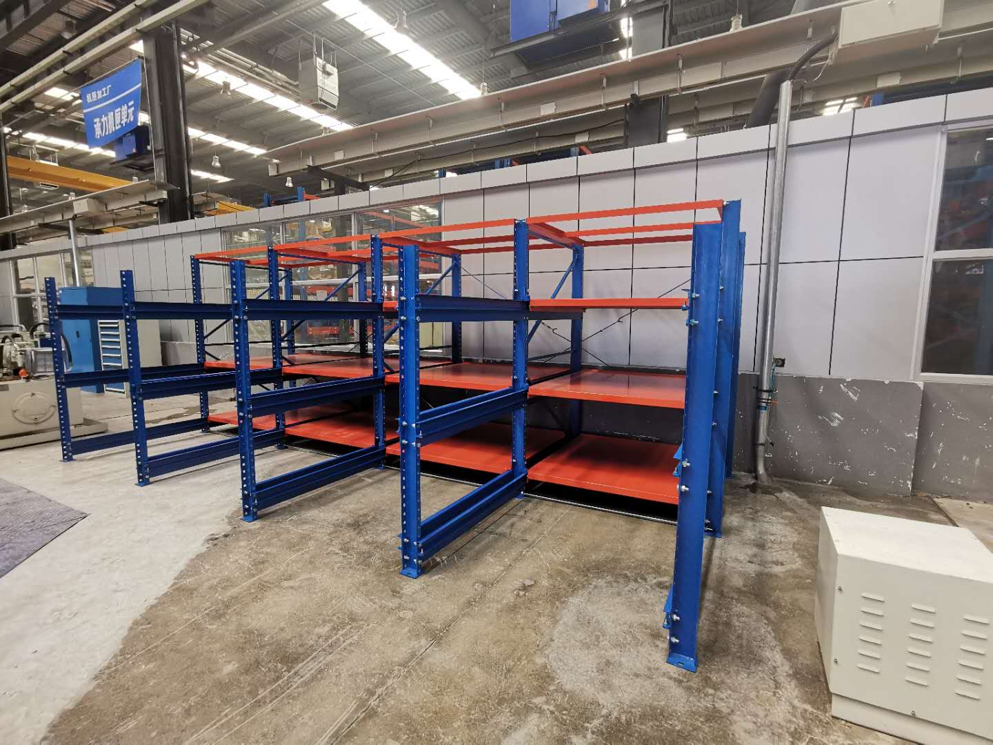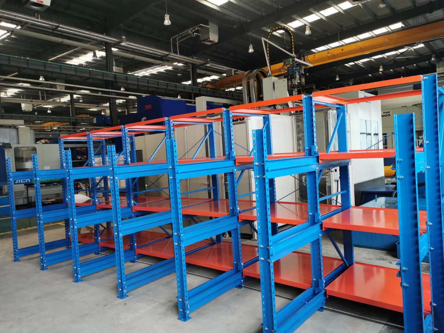 上圖是我司給沈陽一家公司生產(chǎn)定制模具貨架,模具架規(guī)格:L5700*D2600*H2090 數(shù)量一排、層數(shù)為3層加固定板 每層載重1000KG,可抽屜1300MM,立柱10#槽鋼,滑槽4.0+3.0厚度,面板1.5mm 抽屜板可按50倍數(shù)調(diào)節(jié)層高 顏色:立柱藍(lán)色/抽板桔紅色 噴涂 酸洗 磷化 防靜電噴涂