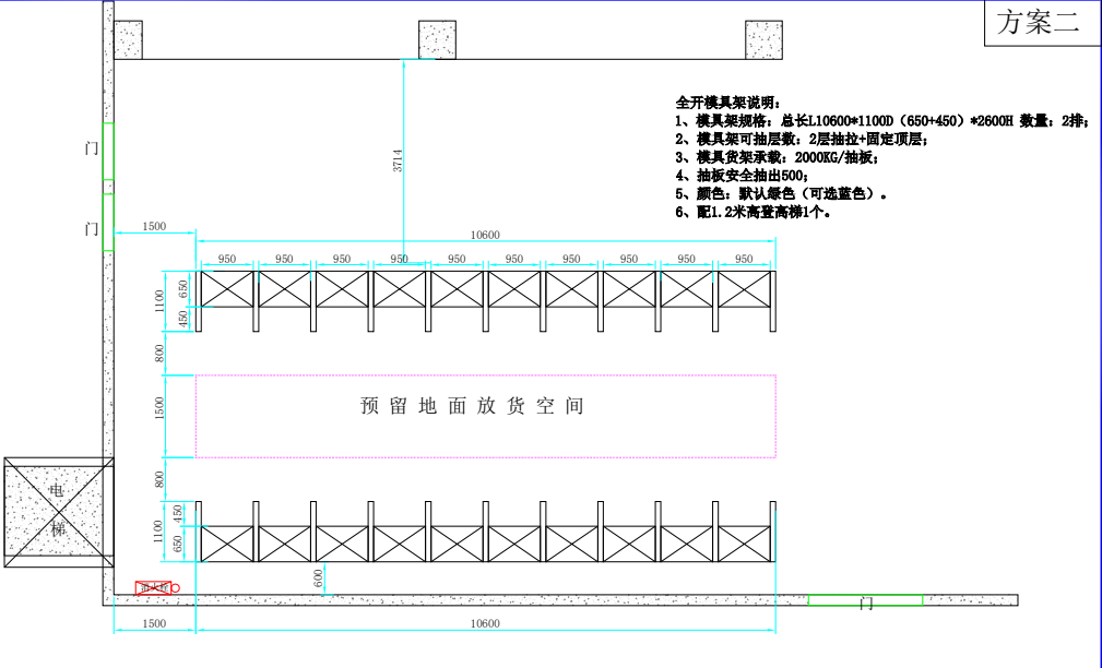 以上案例是最近一個(gè)客戶找到我,讓去看一下他們場(chǎng)地模具幫忙出個(gè)貨架方案,由于客戶的模具是比較大型,重量也比一般的模具要重,我們這邊當(dāng)時(shí)沒給出方案,和客戶約了時(shí)間去場(chǎng)地實(shí)地考察,工程考察完根據(jù)客戶場(chǎng)地模具大小的實(shí)際情況給客戶出了兩個(gè)方案,最后客戶選擇了方案2